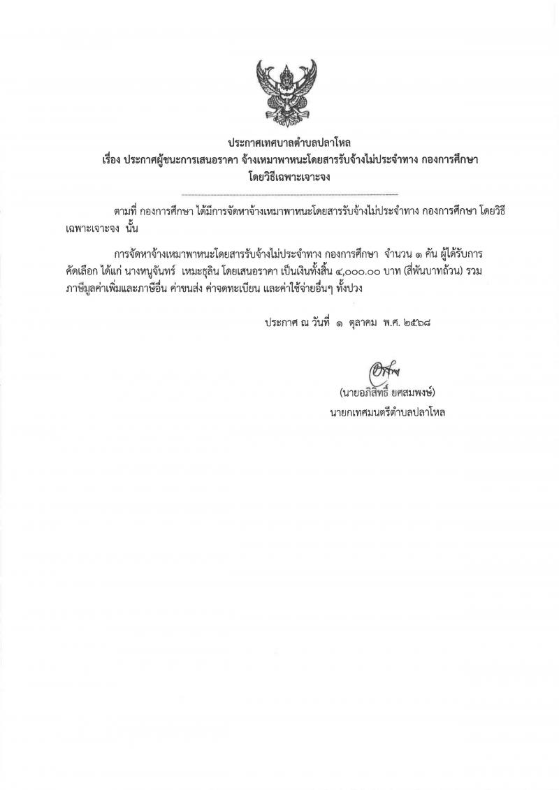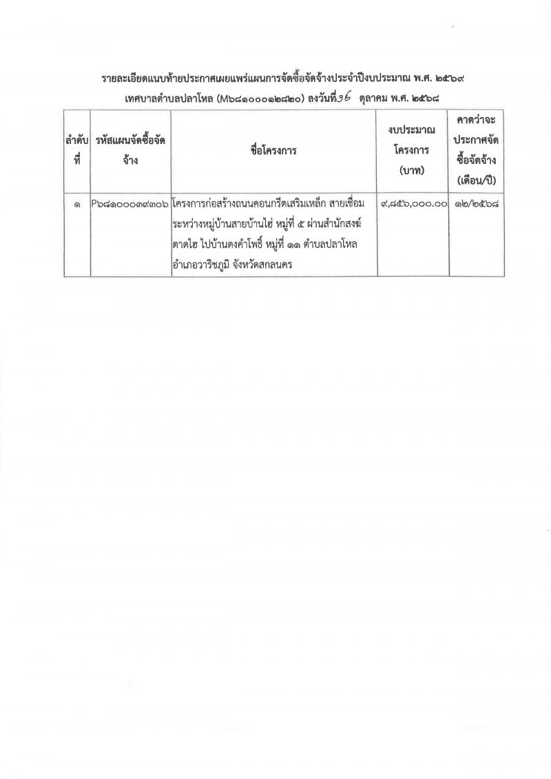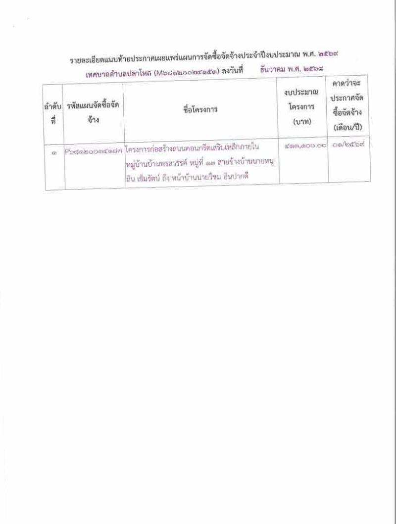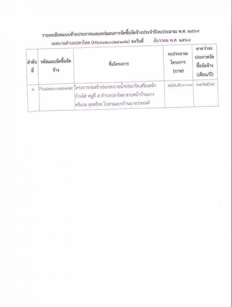 ประกาศเทศบาลตำบลปลาโหล เรื่อง เผยแพร่แผนการจัดซื้อจัดจ้าง ประจำปีงบประมาณ พ.ศ.2568ประกาศเทศบาลตำบลปลาโหล เรื่อง เผยแพร่แผนการจัดซื้อจัดจ้าง ประจำปีงบประมาณ พ.ศ.2568