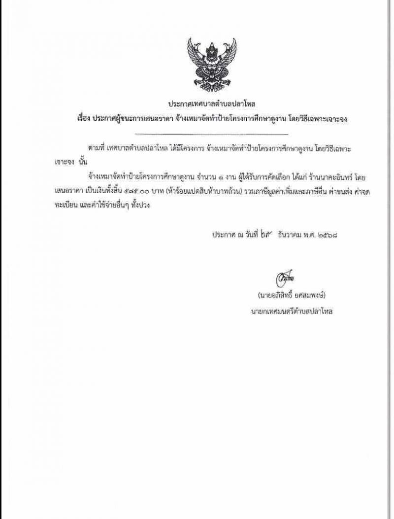 ผู้ลงข่าว : นางสาววรกร ภูเวียงแก้ว จำนวนผู้อ่าน : 3 คน ประกาศเทศบาลตำบลปลาโหล เรื่อง ประกาศผู้ชนะการเสอนราคา จ้างเหมาจัดทำป้ายโครงการศึกษาดูงาน โดยวิธีเฉพาะเจาะจงประกาศเทศบาลตำบลปลาโหล เรื่อง ประกาศผู้ชนะการเสอนราคา จ้างเหมาจัดทำป้ายโครงการศึกษาดูงาน โดยวิธีเฉพาะเจาะจง