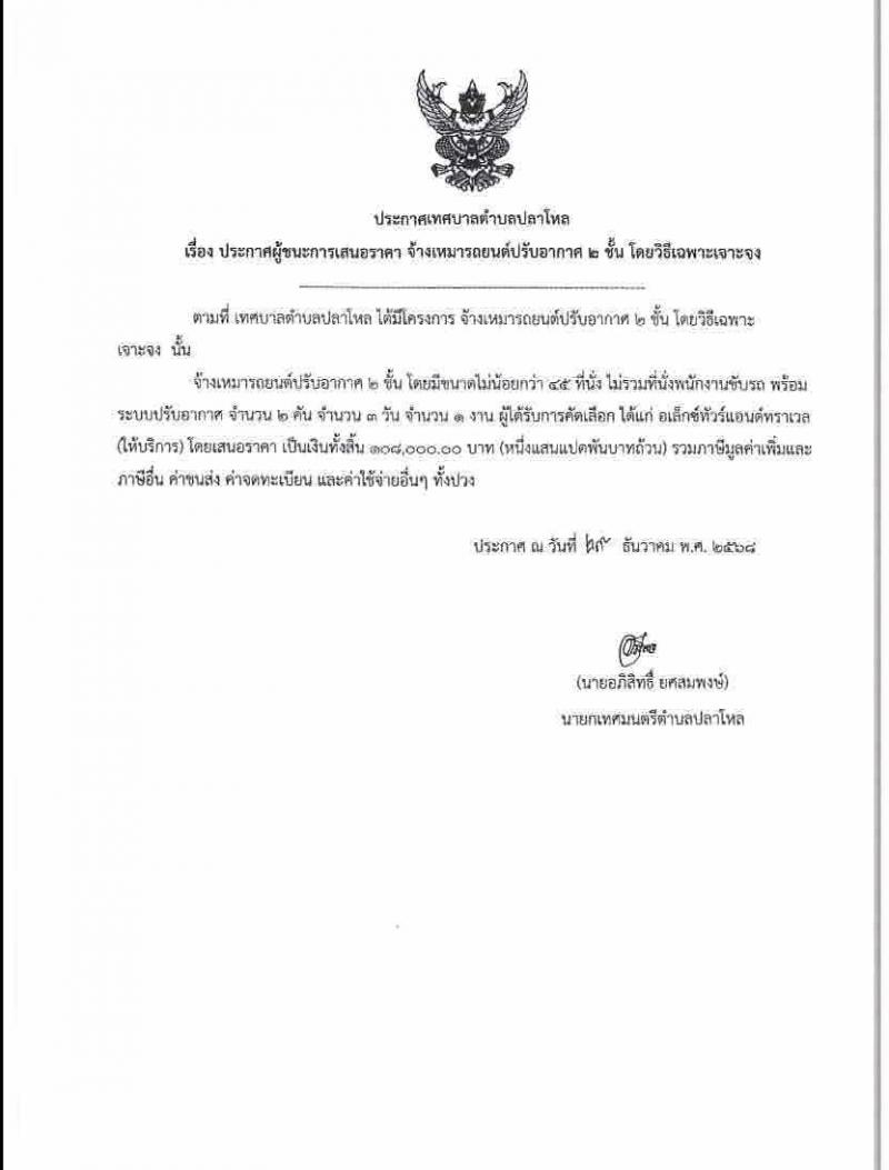 ผู้ลงข่าว : นางสาววรกร ภูเวียงแก้ว จำนวนผู้อ่าน : 20 คน ประกาศเทศบาลตำบลปลาโหล เรื่อง ประกาศผู้ชนะการเสนอราคา ซื้อวัสดุยานพาหนะและขนส่ง กองช่าง โดยวิธีเฉพาะเจาะจงประกาศเทศบาลตำบลปลาโหล เรื่อง ประกาศผู้ชนะการเสนอราคา ซื้อวัสดุยานพาหนะและขนส่ง กองช่าง โดยวิธีเฉพาะเจาะจง